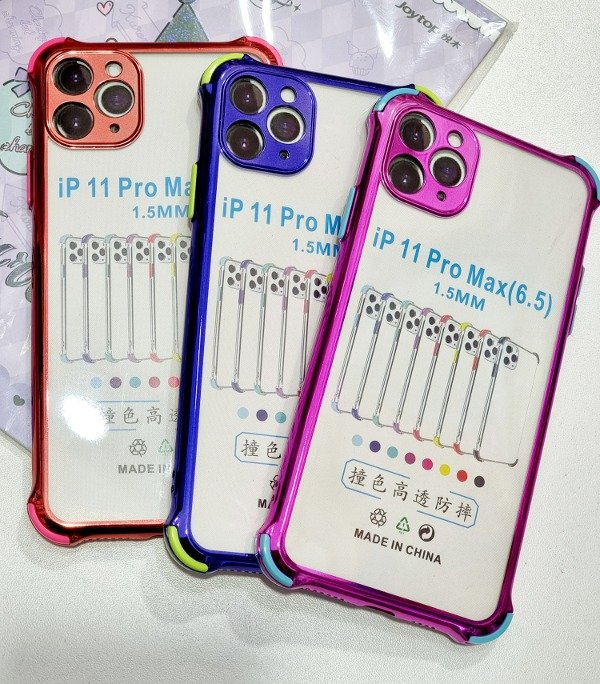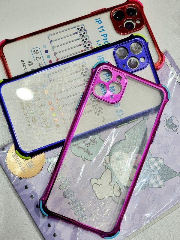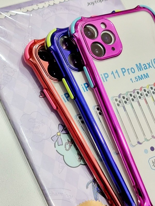 Funda tpu transparente, bordes colores perlados con protector de cámara, esquinas Antishok