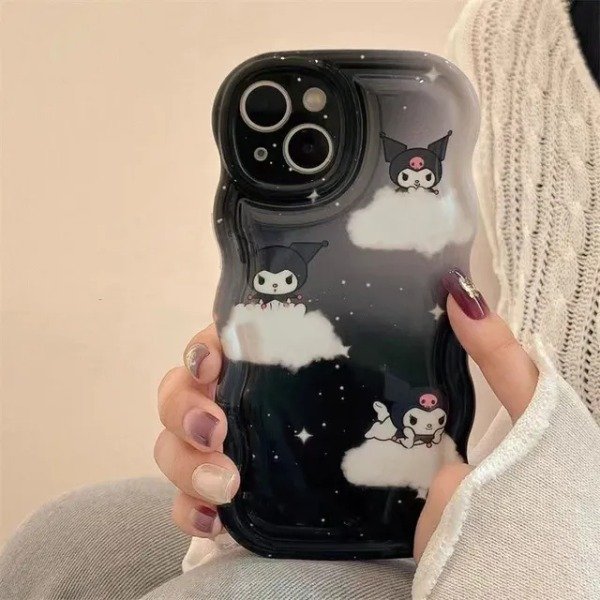 Funda tpu rígida Kuromi para Iphone 14 hermosa funda dibujos animados kawaii, con sujetador pop socket