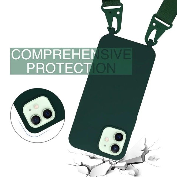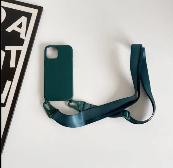 Funda silico rígida, color verde ,con tiras colgante regulable