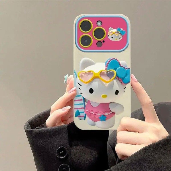 Funda Sanrio Hello Kitty, hermosa funda importada kawaii, con protector de cámara