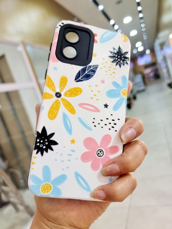 Funda reforzada floreada ,bordes negro ,protector de cámara