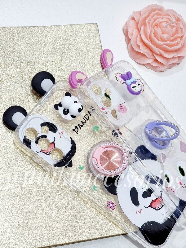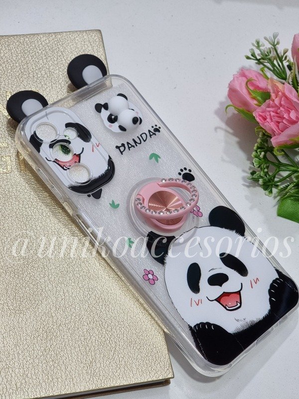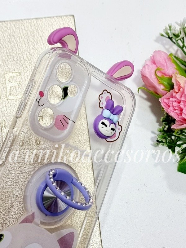 Funda tpu con orejas, y muqueño oso 3D, con protector de cámara y ring brillante incorporado (primera imagen ilustrativo)