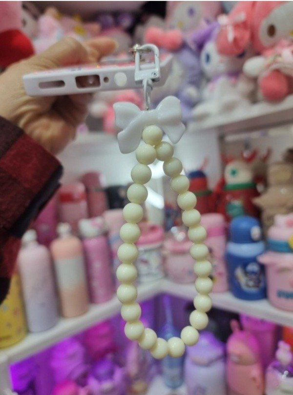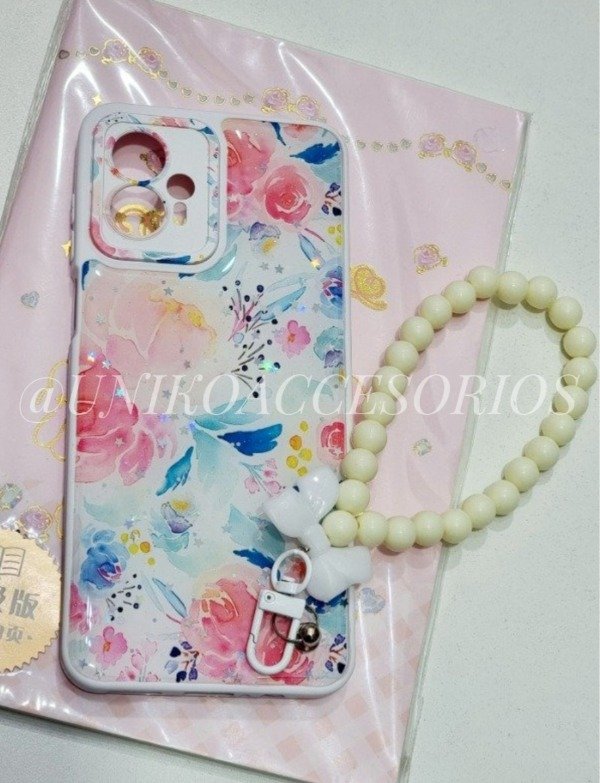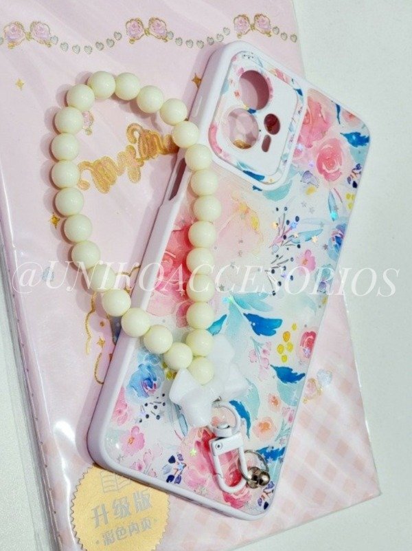 Funda tpu rígida, color blanco pulsera colgante perlas lindo detalle,protector de cámara