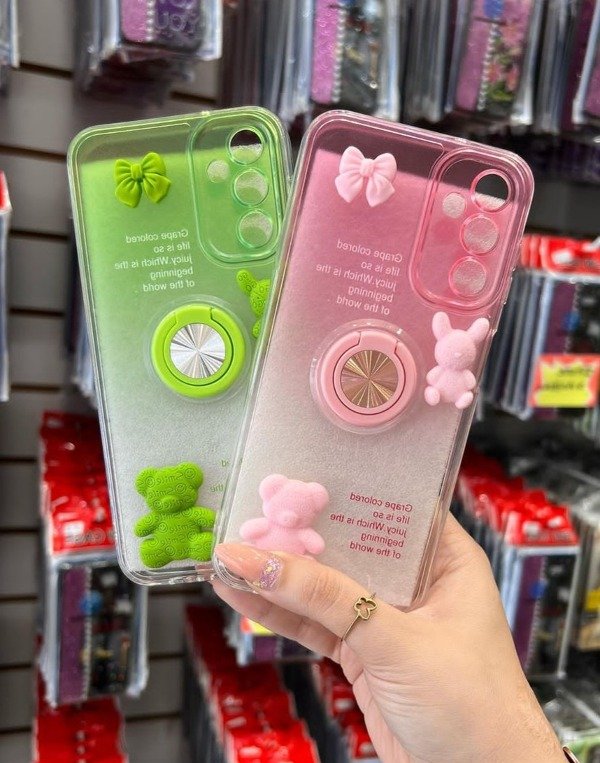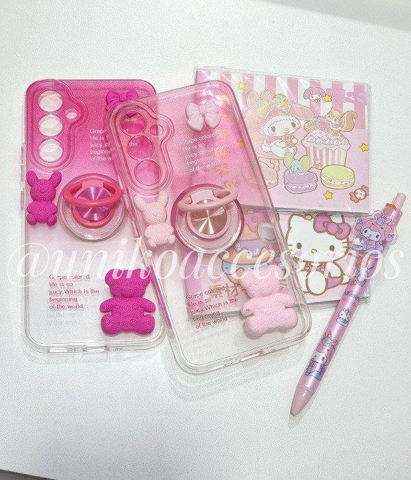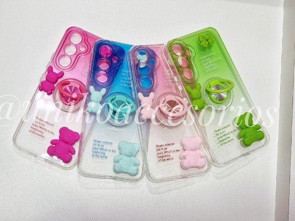 Funda tpu colores transparente ( stock fucsia) con apliques dibujos 3d ,con protector de cámara