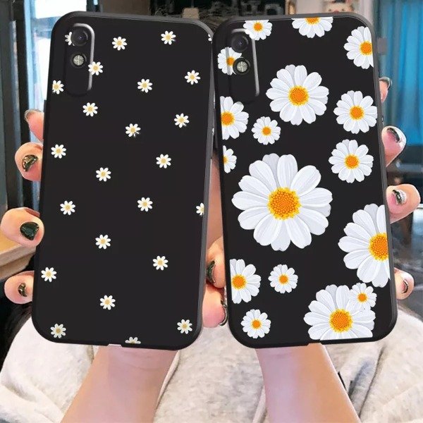 Funda silicona suave ,tipo original, funda color negro estampado de flores pequeñitas