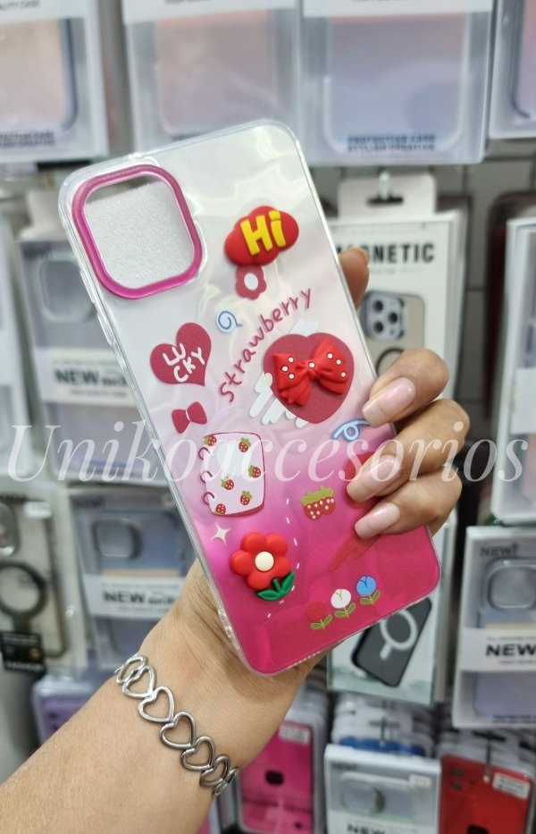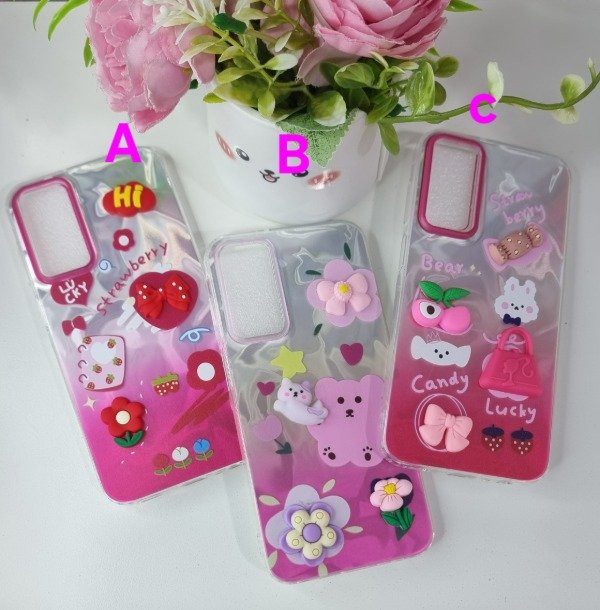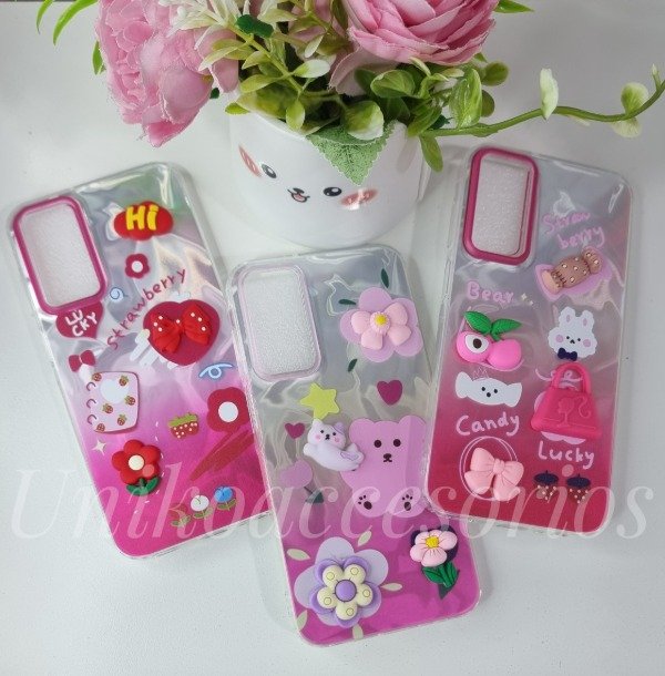 Funda rígida Samsung A04 ,estampado ositos ,cadena de oso colores mate ,borde de la funda blanco