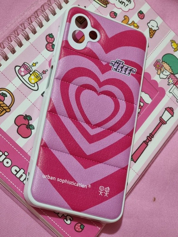Funda puffer, corazones, bordes blanco , protector de cámara