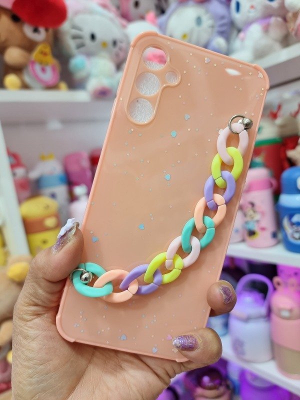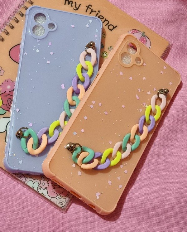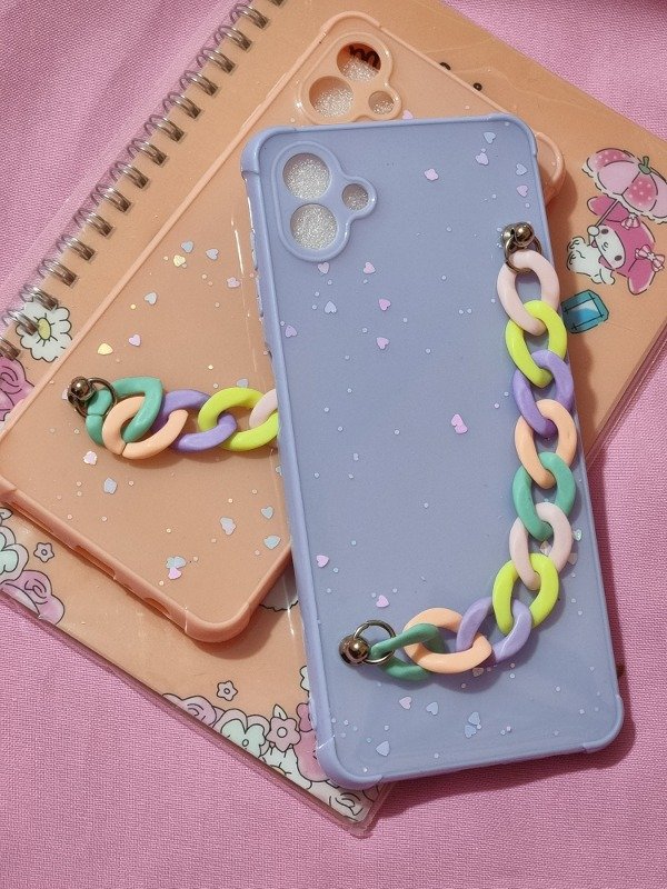 Funda tpu rígida, esquinas reforzadas, cadena multicolor, protector de cámara