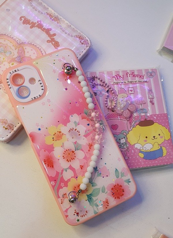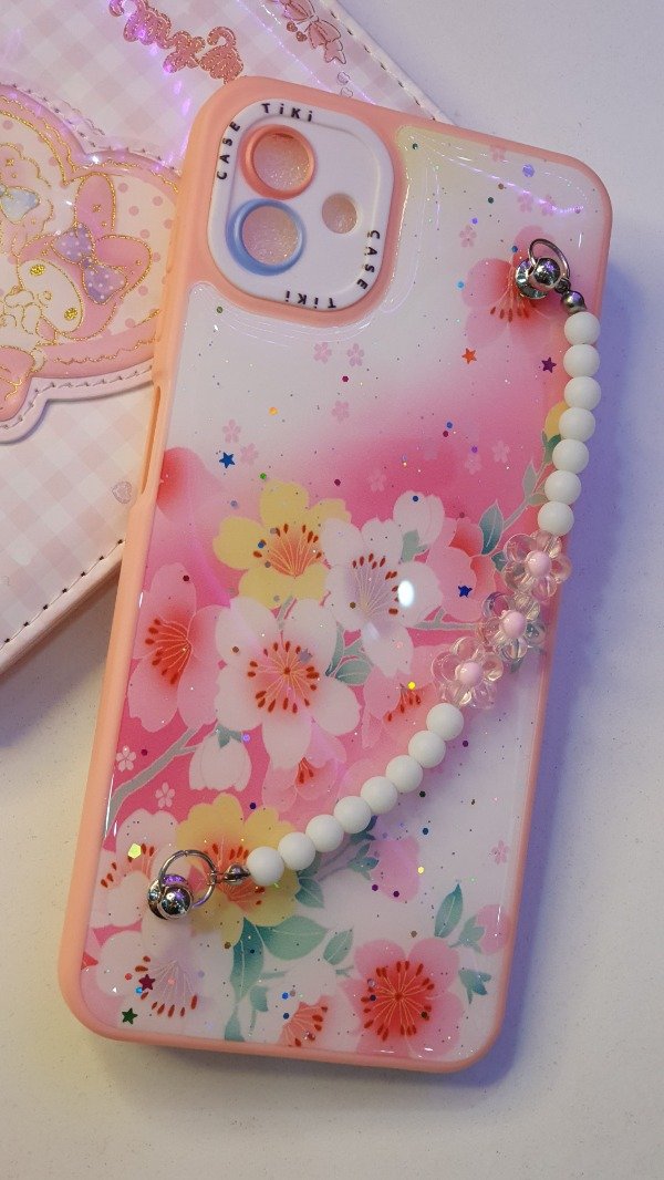 Funda reforzada, estampado, con cadena para sujetar, borde de la funda color salmón