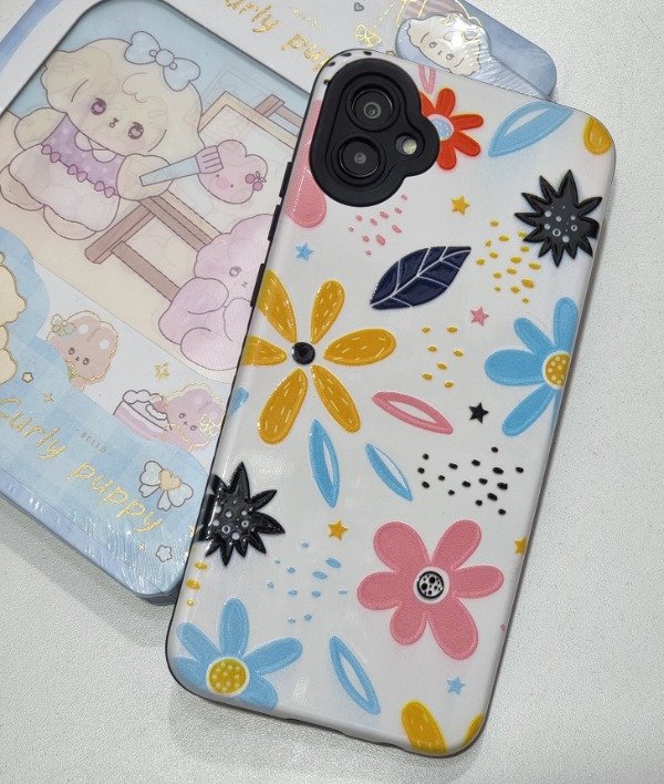 Funda reforzada floreada para Samsung A04e , protector de cámara, borde negro
