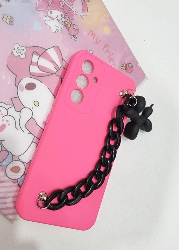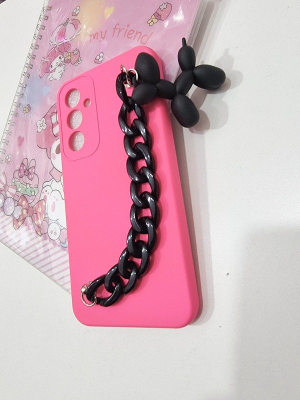 Funda silicona suave ,cadena negra con un perrito colgante