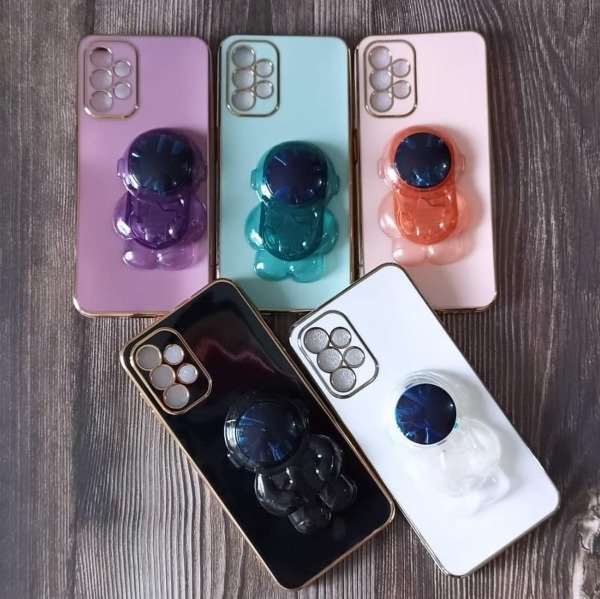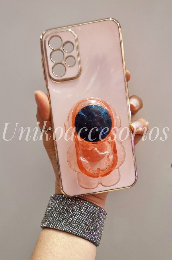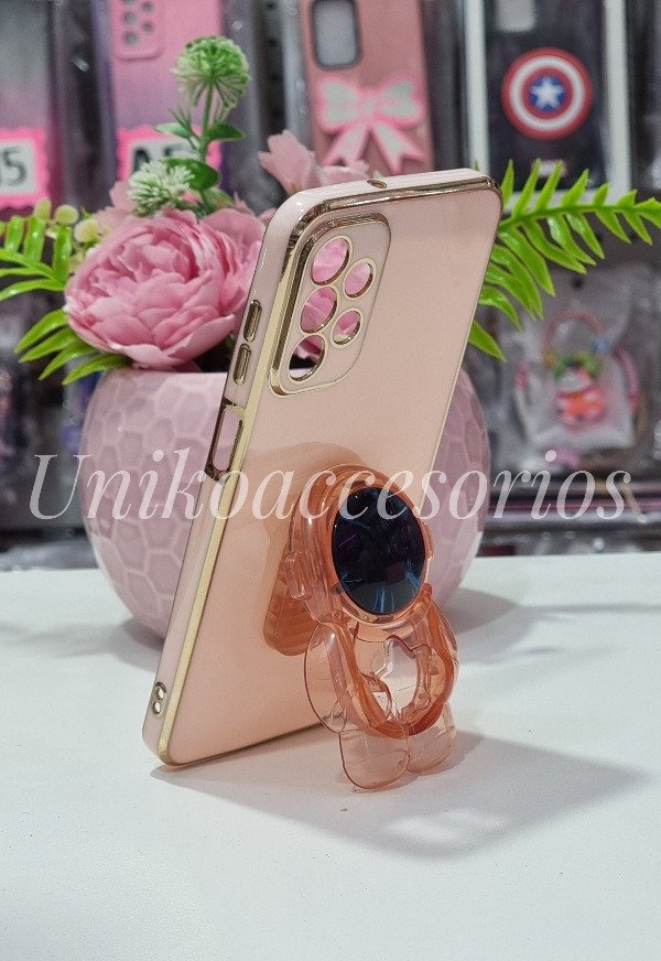 Funda Astronauta, Samsung A23 ,bordes dorado y protector de cámara
