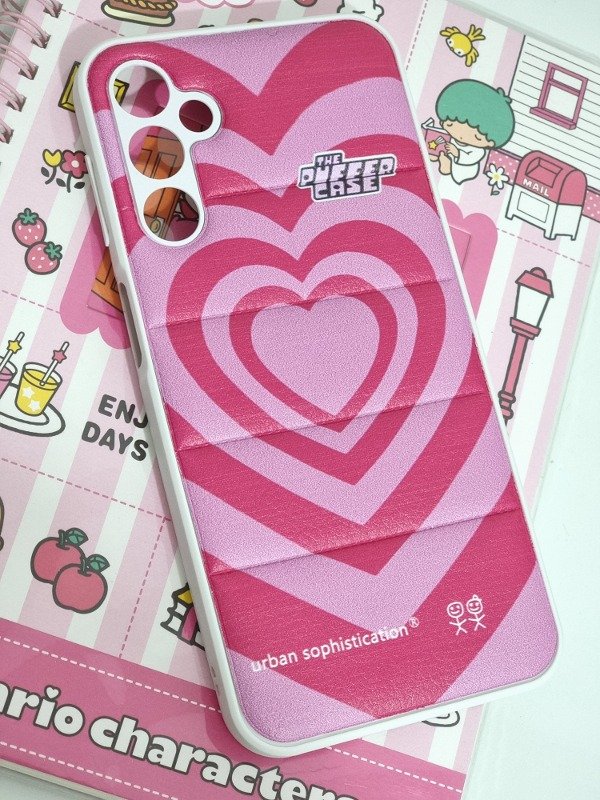 Funda puffer Samsung A24 , protector de cámara, corazones 3d