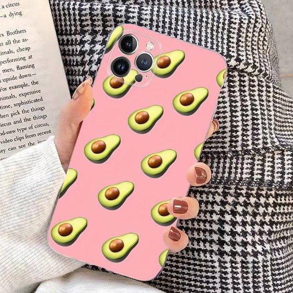 Funda reforzadas estampado paltas馃 color salm贸n, protector de c谩mara
