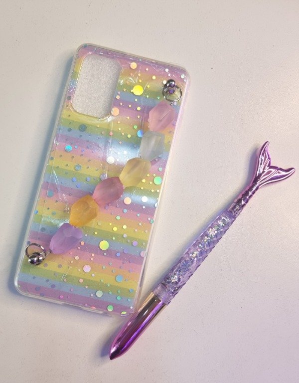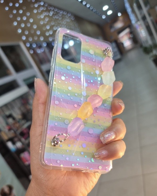 Funda tpu brillosa ,cadena piedras talladas colorida