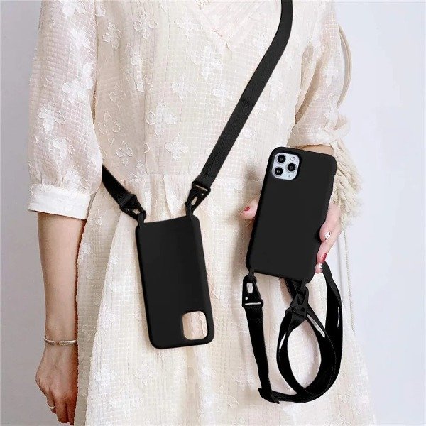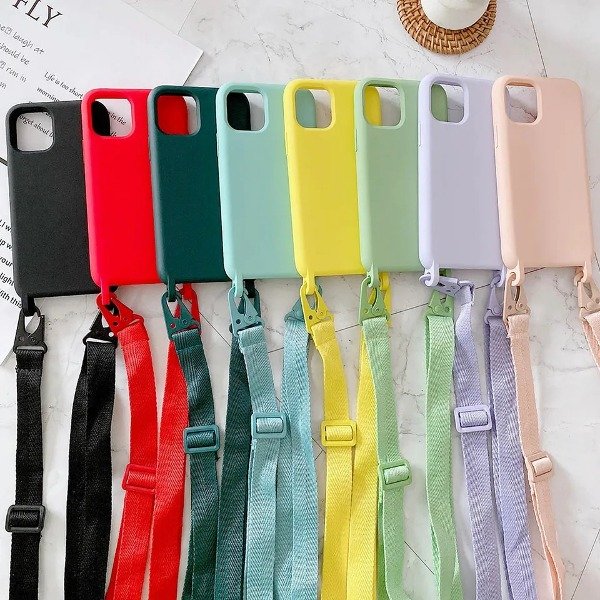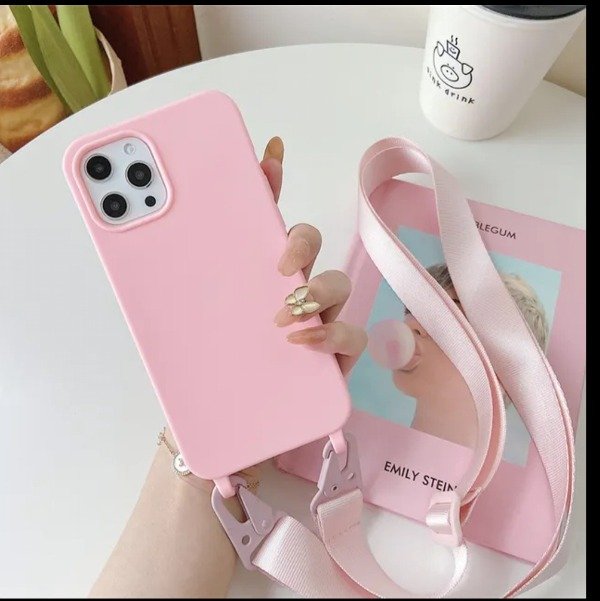 Funda silicona rígida, con tela Anti rayaduras ,tira colgante