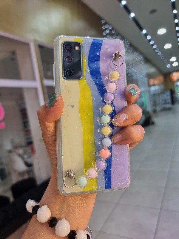 Funda Arco iría para S20 fe ,cadena esferas multicolor