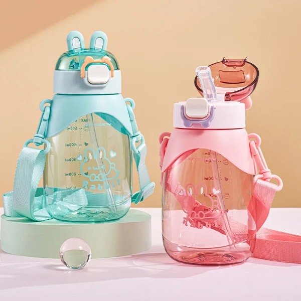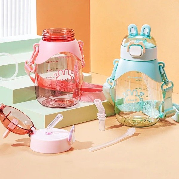 Botella conejo de plástico, para llevar agua ,con tiras colgantes capacidad 650ml